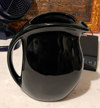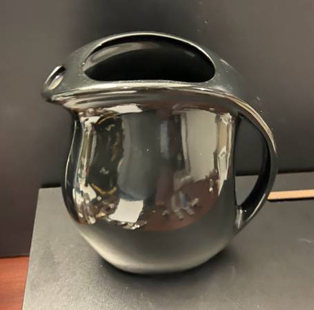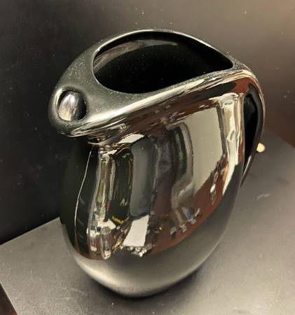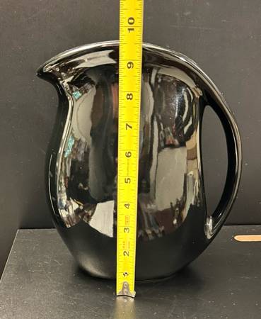 2 Glossy Ceramic Stoneware PITCHERS… Black 9.5” T x 9” W … White 8 Inches Tall The Black one is a VINTAGE FELTMAN LANGER pitcher which are PRICED HIGH online Black Glossy Ceramic Stoneware Pitcher...