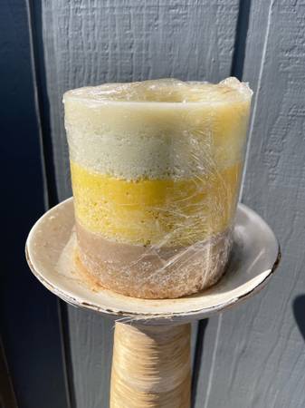 Purchased new from Palecek quite a few years back. Still in great condition. Can choose from 2 different candle set colors. 59" tall. Candles alone cost $50 new.