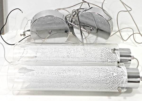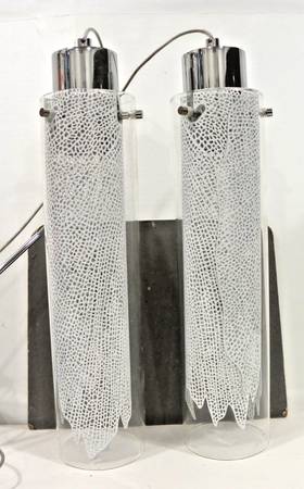 2 Kitchler LED Glass Tube Pendant Light Fixtures Adjustable Height - Model No. CP141997 13 1/2" long - 3" diameter - works fine replaced during remodel