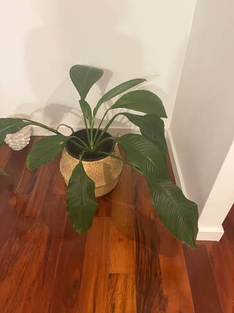 Gorgeous large, broad leafed plant in basket with handles. Instant upgrade for your space!