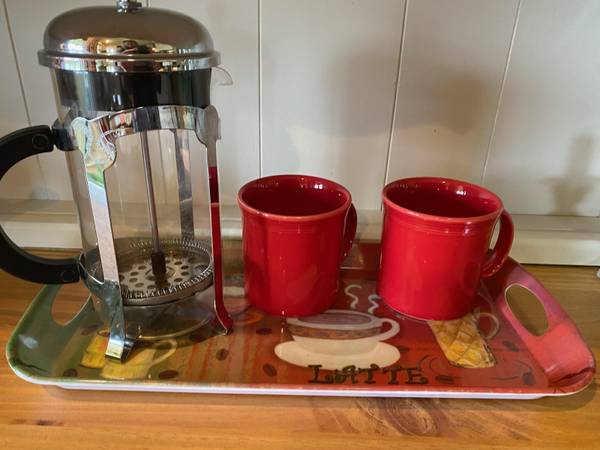 Keeps your coffee cups, pot, beans, sugar & supplies neatly together on 1 tray. It can also be used as wall art, or for serving coffee. Lots of versatile uses & is just so cute! Let your...