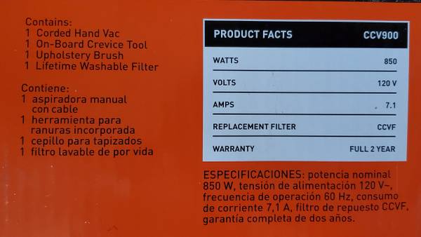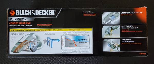 * Black and Decker CycloPro Corded Hand Vac with Patented Dual Chamber.. model CCV900