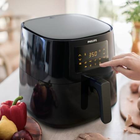 The Philips Airfryer uses hot air to cook your favorite foods to crispy perfection, with up to 90% less fat.*