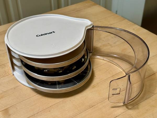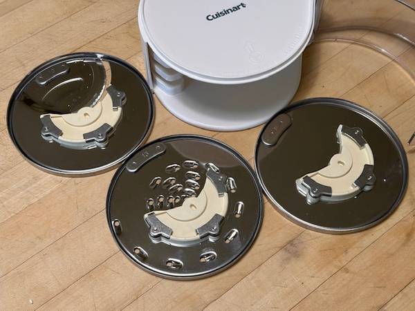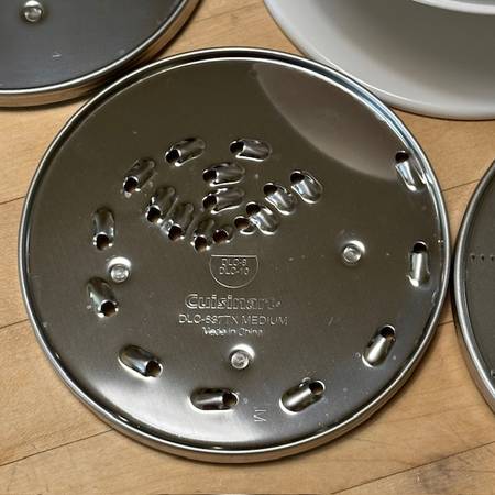 The discs are about 5-7/8”-diameter and would attach to the DLC-8 or DLC-10 processor’s detachable stem (NOT included.) All these processor accessories have been retired and are no longer available from CUISINART. This is an opportunity to rejuvenate the home workhorse. Set of 3 discs and holder new on Amazon would have an accumulative retail price of over $140 and individually priced in the $30-range. Here is a bargain-priced and available for local pick-up in San Rafael, cash, Venmo, or PayPal.