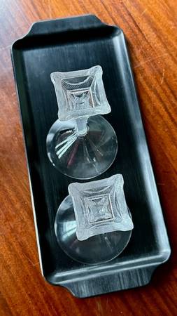 Set of 2 Eiffel Tower-shaped Stemmed Martini Glasses in clear glass, these are virtually as new but without retail packaging…no cracks, chips, or scratches. Glasses are about 8” H x 4-1/2”-dia. rim w/2-1/4” Sq base. Set of 2 is available for local pick-up in San Rafael, cash, Venmo, or PayPal.