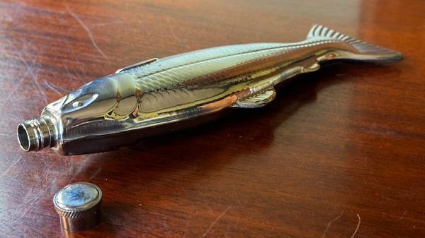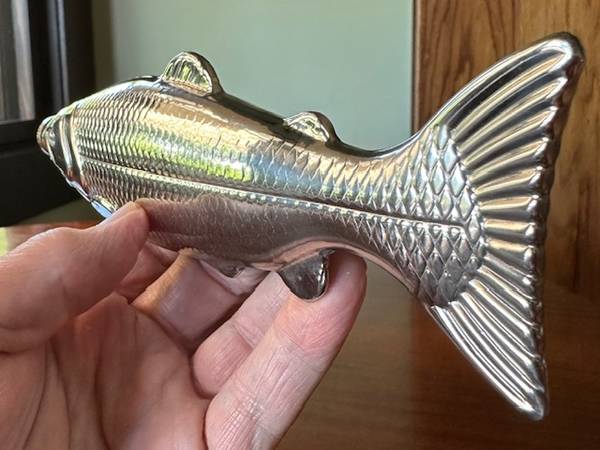 Foster & Rye Trout Stainless-steel Flask - Fish Flask w/Screw-on Cap appears virtually as new but without packaging. It’s perfect for anyone who can drink like a fish. It has a tight-fitting cap and holds 4 oz. of any liquid of choice. (Note: Not intended for long-term storage, so ‘drink up!’) It’s about 8” L x 2-1/2” H x 1” W. Retailing elsewhere on-line for almost $40, a bargain here and available for local pick-up in San Rafael, cash, Venmo, or PayPal.