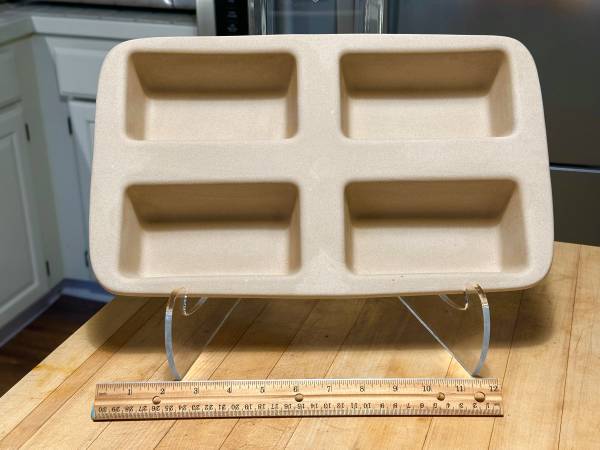 Pampered Chef Stoneware Mini 4-Loaf Pan #1418 was gifted, opened, admired but never used. As such it is virtually new but without carton and papers. It is part of Pampered Chef Classics Collection Family Heritage Stoneware; the pan has been retired and no longer available in the Pampered Chef catalog. It’s made of high-quality stoneware, about 15” L x 9” W x 2-1/2” H. Individual loaf wells are about 5-1/2” L x 3” W x 1-3/4” deep. It’s perfect for breads…pumpkin, beer, and banana… baking quickly and evenly in this pan. (Generally, the batter from a 9” x 5”-inch loaf recipe will fit in two of these smaller loaves.) It's easy to clean and dishwasher safe. The pan is also heat-resistant up to 450-degrees and microwaveable, a versatile tool for any home cook. When found new on-line it retails in the $120-range, used, the $80-range, a bargain here. It’s available for local pick-up in San Rafael, cash, Venmo, or PayPal.