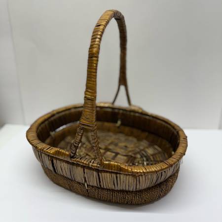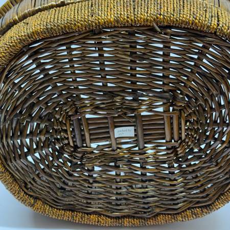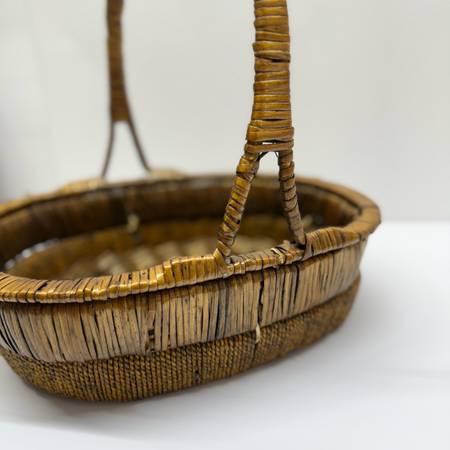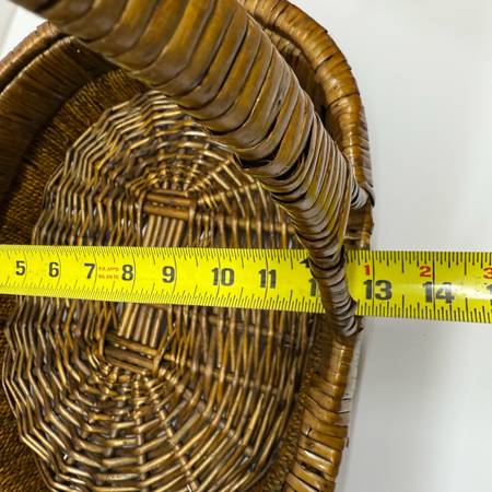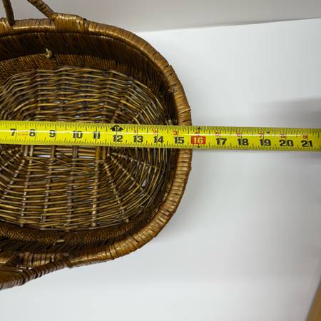 Beautiful, rustic, large, oval-shaped wicker basket with handle. Perfect for collecting vegetables from the garden, bringing or organizing arts and crafts, storage, kids toy display, picnic, and more!