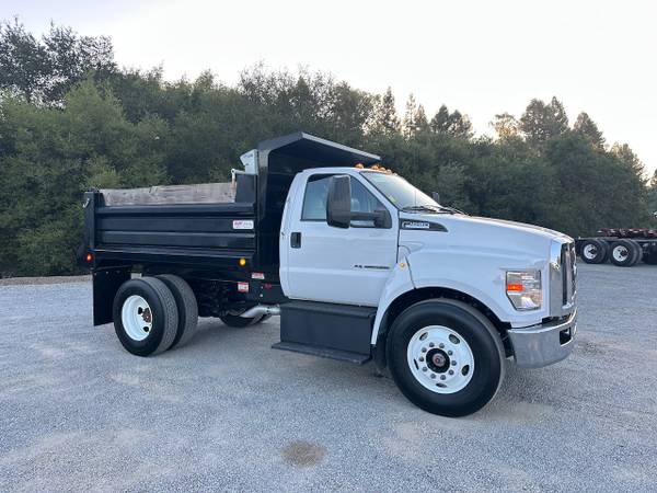 This 2021 Ford F650 Dump truck was previously owned by a development company in California. This truck features an automatic transmission, 300 horsepower, and under 25,000 miles. Give our sales team a call for more information or a full walk-around of this unit.