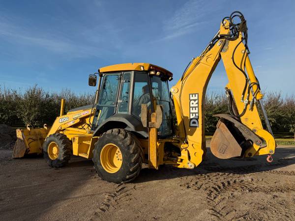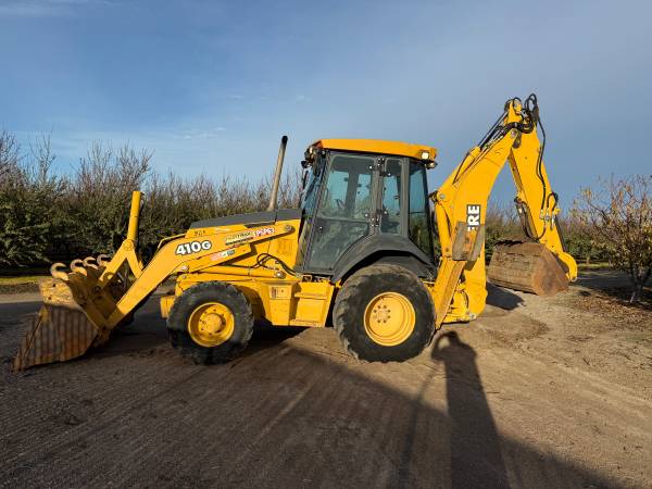 2004 John Deere 410G backhoe, very clean and good running machine with only 3,400hrs, enclosed cab with heat/air, 4 x 4, 4n1 bucket, extend a hoe, auxiliary, hydraulics, hydraulic thumb. 44,800