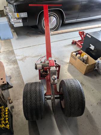 This trailer mover has amazing capabilities. Built from a kit. The wheels I chose for the project are off of a golf cart and does allow for heavy lifting geared and powered with a winch perfect for the individual that has too many toys. 415-261-161seven