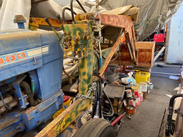 Front mounts fit Ford 5000. Adapters made to fit rear of loader to tractor (included). Ridged pipe carrying high pressure hydraulic to control valves kept pump from fully engaging with crankshaft. Easily remedied by replacing pipe with high pressure flex line. Rigid return line can be shortened and coupled with flex coupling. Ran out of time before installation complete.