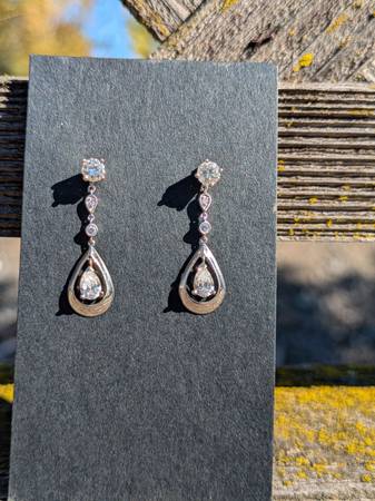These are a pair of diamond earrings. The drop is jacketed and can be removed for wearing post set separately The set comes with appraisal, values and receipts these were custom made just in time...