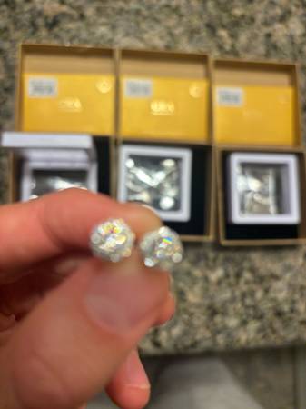 Completely new in bag and packaging Passes diamond tester which I can provide at meetup and GRA approved 80 for one and if you would like all three we can work out deals, also have other earrings on...