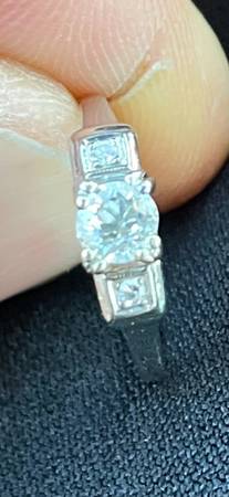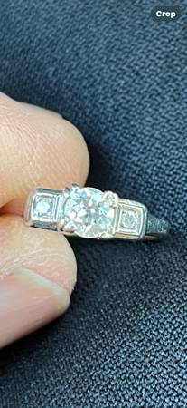 Beautiful .5 carat diamond ring VS1 H/I 14K White gold band. 1940’s era. Band is 4/5 size Paid thrice at local second hand jeweler. I was offered a little under my asking price by the same jeweler. Make me an offer before it hits EBay. Trades considered. No Jewelery!