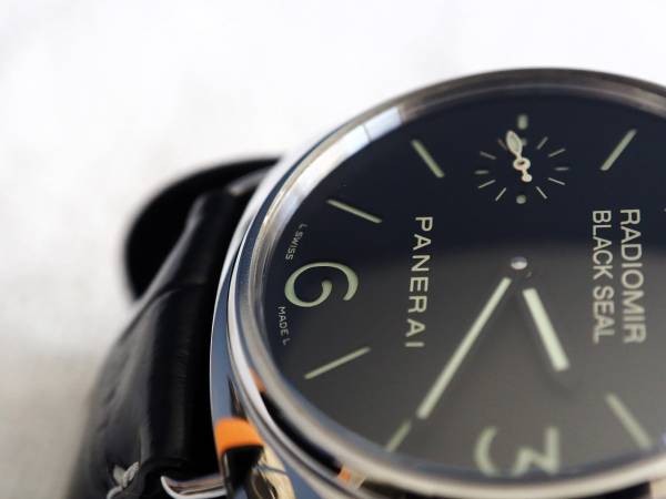 Carrying the "Black Seal" series designation, the PAM 183 serves as an homage to early Italian Frogmen (military scuba divers) for whom the watches were made for in the 1930s, in coordination with Rolex. While historically inspired, the watch is nonetheless a quintessential example of the modern Radiomir. Featuring a 45mm steel cushion case with wire lugs and a flared crown, the watch recalls vintage aesthetics, while its polished finishing and soft edges display a modern elegance. The short wire lugs make the watch very wearable, even for smaller wrists.