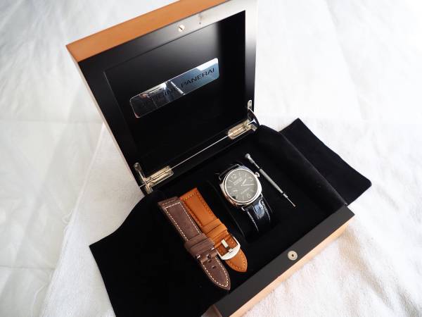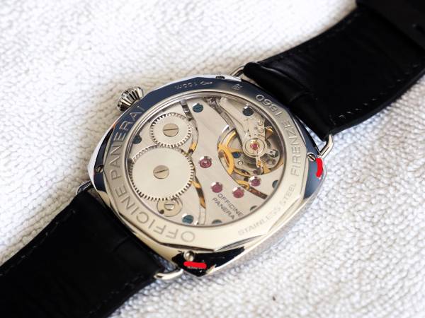 The PAM 183 keeps things classy and timeless. Everything we know and love about Panerai is present, including a sandwich dial construction, legible pointed baton hands, and a small seconds dial at nine o’clock. The full-view of the beautifully-decorated COSC movement comes at no expense to the watch's usability, which is paired with a screw-down crown and screwed-on caseback for 100m water resistance. Many new model Radiomirs have pressed-on casebacks.