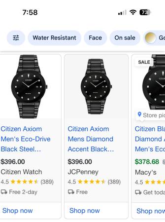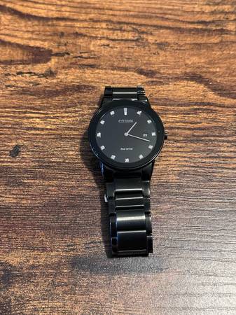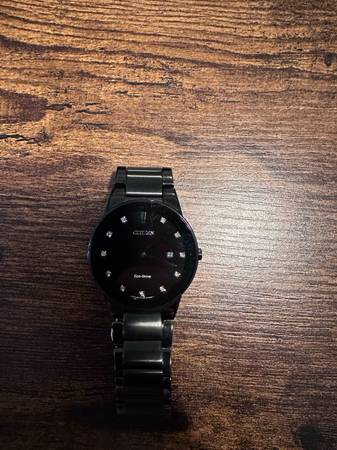 Like new citizen eco drive watch. Axiom black steel with diamond accent.