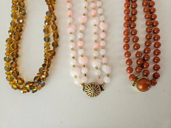 3 VINTAGE BEADED NECKLACES DIFFERENT LENGTHS $25.00 EACH OR ALL 3 FOR $60.00 CASH
