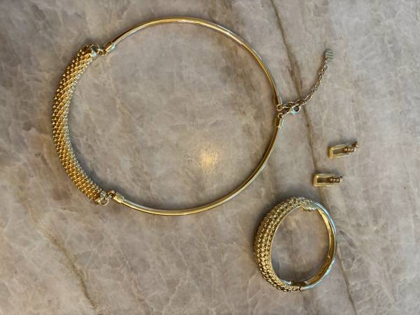 Not sure of the brand, as it was a gift. It is a nice heavy gold material, looks beautiful Price is for all pieces Contact
