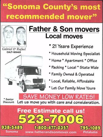 💥 Father and Son Movers 💥, Sonoma - Marin - Napa County's Most Recommended Mover. Mention this ad and receive a 10% discount......📞.................707-523-7006..............................................