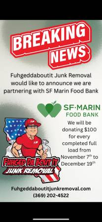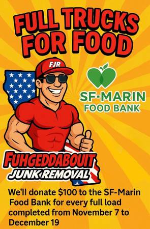 This holiday season, Fuhgeddaboutit Junk Removal is proud to partner with the SF-Marin Food Bank of San Rafael to make a difference right here in Marin County. ❤️