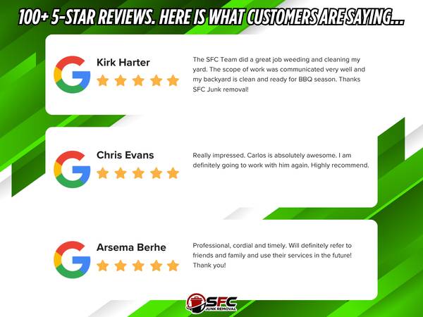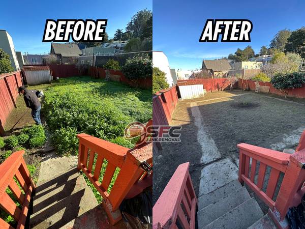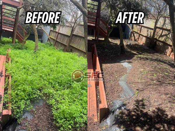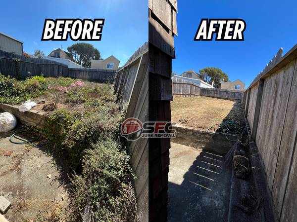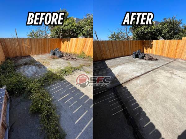 Tired of looking at an overgrown, messy backyard? SFC Junk Removal is here to help! Take a look at the before and after photosโwe specialize in transforming chaos into a clean, usable space, just in time for BBQ season or simply enjoying your home.