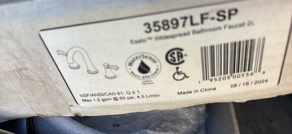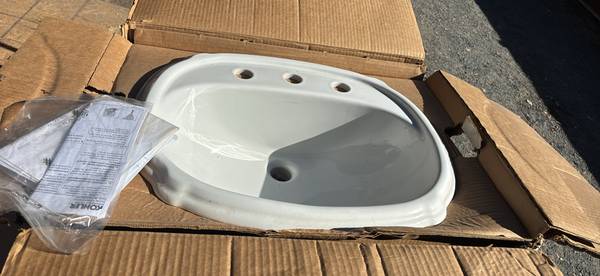 Overmount porcelain bathroom sink and faucet by Delta brush Nickel finish