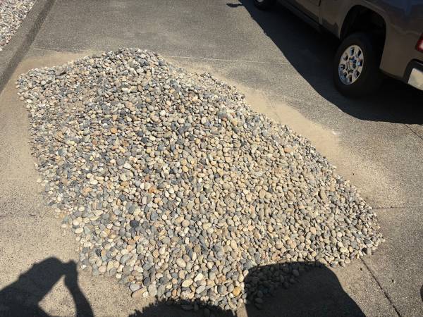 We have approximately 2+ yards of multi color River rock, 1 1/2” Noiyo Cobblestone. You can take the whole pile for $250 or 5 gallon buckets for $20 each. and load it yourself.