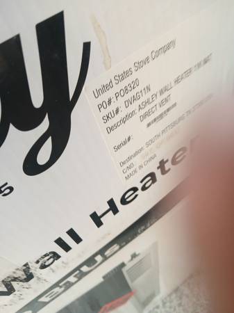 Brand new unopened box ashley heater priced at $480 at home depot ended up not needing this second on the first one did the teick and is hot enough priced to sell $200