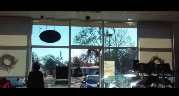 TWO darkening roller shades with cassette valances. These two are the 'Belmont Dove' (#91425) shades with cassette valances (clean finish at top on the window) by Budget Blinds in Vacaville. EACH has a chain mechanism for lower/higher (A left one and A right one), screw into top of window or ceiling and clip on, hung in my business from January 2017 until September 2020 (there are 2 pics showing in business).