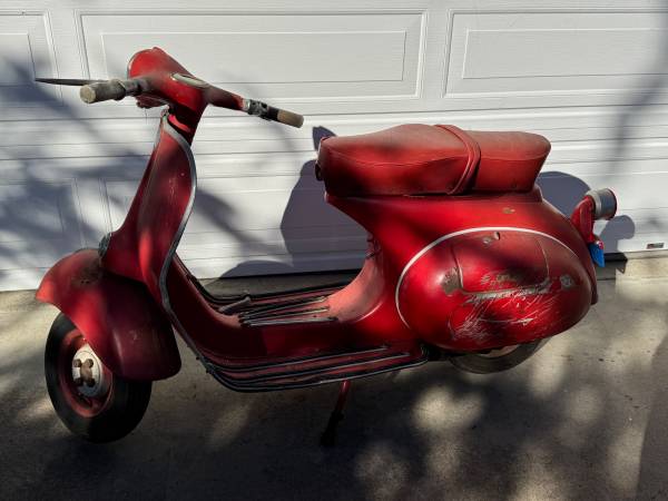 She's a beauty 1963 VBB2 150cc (with a VBB1T engine) Piaggio branded Vespa. Comes with original manual (lots of mechanic notes), all receipts, a box of spare parts. It was originally sold by Sears, but still badged as Piaggio (not Allstate). It had been sitting since 1984. I cleaned out the tank and she starts right up. New title, registration and plate.