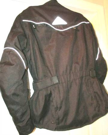 A VERY NICE jacket and has not been abused. Pre-owned. Very good shape. No tears, or stains. See Photos. All zippers zip and snaps snap. Has the armored inserts intact.