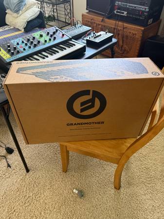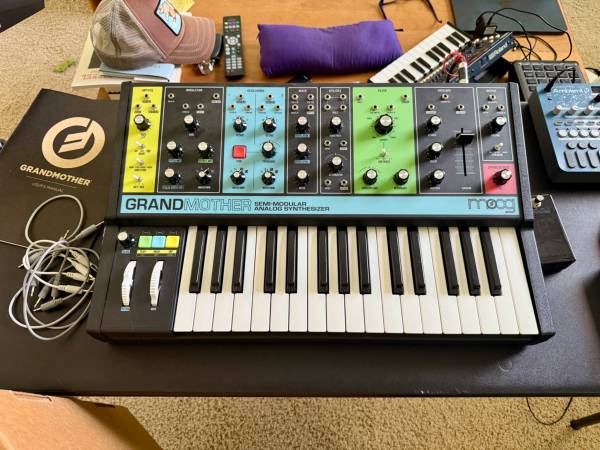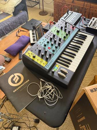 Moog Grandmother Mono Synthesizer. Perfect condition with the original box, manual, patch cables, power supply. Like new condition.... Located in Cloverdale. Thanks.