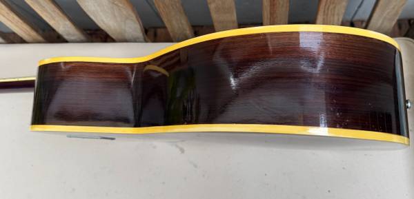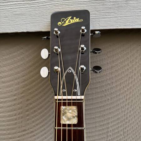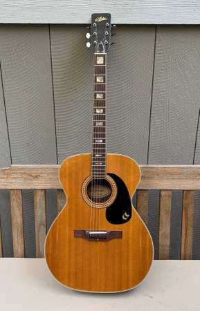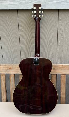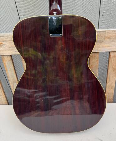 Great condition, 000 size acoustic guitar. Made in Japan in the early 1970s. Rosewood back and sides, laminated spruce top and mahogany neck. Has some finish checking, but plays great with low action. Recently cleaned, fretboard oiled and new strings put on.