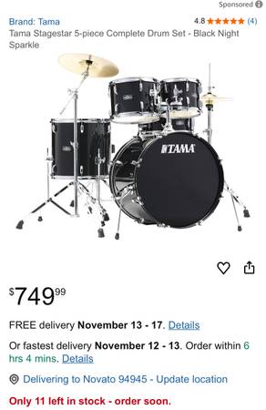 Selling a Tama Stagestar 5-piece Complete Drum Set that’s in excellent condition.