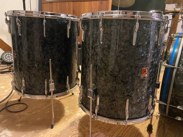 60s Black Diamond Pearl Premier. 22x14 kick, 14x8 rack tom, and a 16x18(deep) floor tom.Very rare kit. Sounds great tuned up high or down low and fat. $1700 cash Vintage drums Ludwig slingerland...