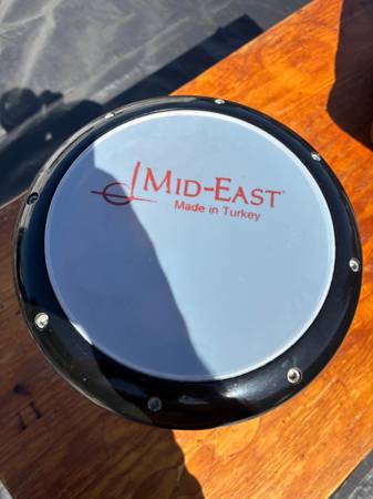 For sale at Loud and Clear Music Turkish drum with carrying bag. Plays very well. It’s turnable with an Allen wrench. Very amazing artwork on the Drum.