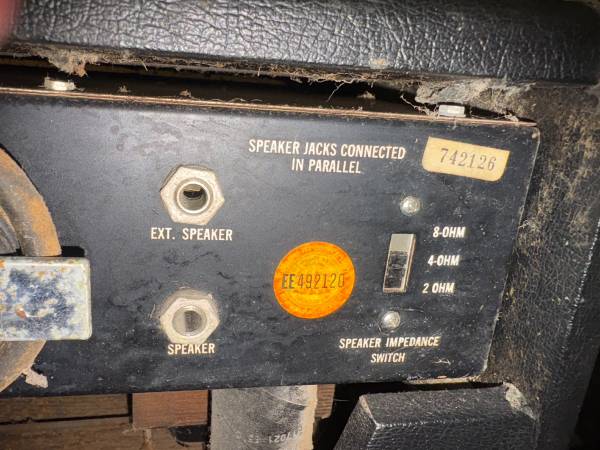 Vintage Ampeg amplifier, model details visible on the back panel. Full service a decade ago and never used since! A classic model and this one special as it was part of Huey Lewis's first band CLOVER! Don;t have cable for amp to speaker so hopefully you have one to try out! These go from anywhere between $1200 on up to $1800. Want to sell , first $700 cash gets it or BEST OFFER.