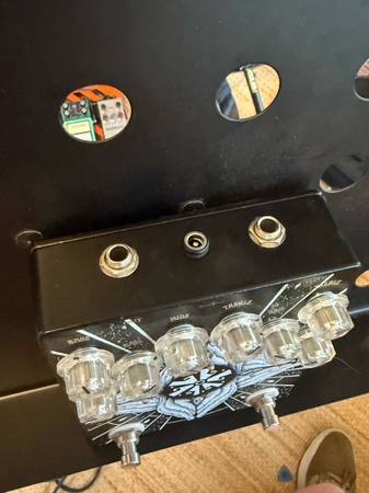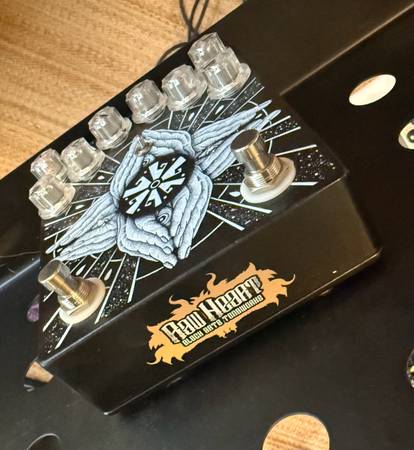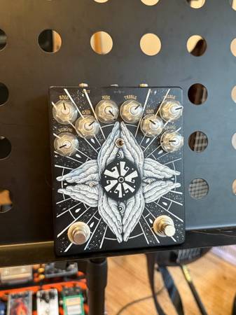 Excellent condition, this is Mike Scheidt of Yob’s signature pedal. Combo of a Black Arts Quantum Mystic, also Mike’s signature, which is a take on the old Ross Distortion pedal, and a lower-gain version of the Black Arts Witch Burner (tubescreamer-ish overdrive). The toggle switch controls which circuit feeds into the other.