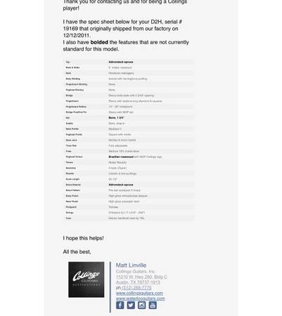2011 Collings D2H dreadnought with Adirondack spruce top and bracing/E. Indian Rosewood back and sides. Baggs Anthem and OHSC....... very lovingly played and kept in case when not played.....immaculate condition. $4800- low ball offers will be ignored... Not interested in any trades....... contact me for more info/pictures. Thanks