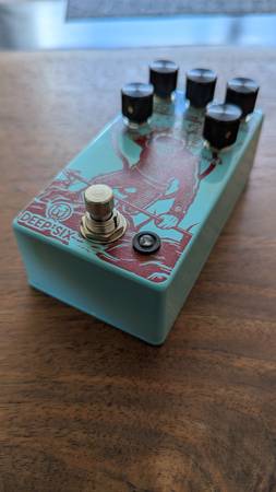 "The Deep Six is a true bypass studio-grade compressor in stomp box form, inspired by the performance of the Universal Audio 1176 with the simplicity of the Ross and Dynacomp. Offering a Level, Sustain, Attack, and Blend control, the Deep Six will give you unmatched versatility at a price you can afford. The pedal can be powered from a 9V battery or DC Supply. Polarity will never be an issue as the Deep Six comes standard with a polarity correction circuit. The internal voltage is doubled to 18 volts giving you the maximum amount of headroom for your sound while maintaining a typical current draw of 8.9mA for extended battery life. The Deep Six also offers a Blend and Attack control which allows you to use the pedal with active pickups or humbuckers. The blend feature allows you to use high output instruments while truly being able to dial out any distortion that may be present.