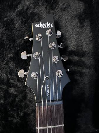 Schecter Demon 7, 7 string guitar. Brand new, played only a couple of times. Not a scratch or ding on it. Paid around $500 after taxes. Asking $450, I have a guitar bag I could throw in at that...