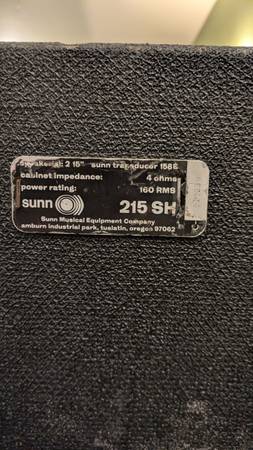For your consideration is an old beat up Sunn Transducer 158B bass cabinet, I believe they were originally paired with the coliseum bass heads. Old and heavy and loud.