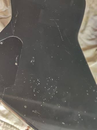 This is a rare 1980 Matsumoku designed Aria Pro II ZZB bass. It has a black finish with a thunderbolt graphic. The wide-range pickups and electronics work as designed. The maple neck is straight and has a low action. The 22 frets are polished and in good condition. It has an alder body and a rosewood fretboard. The strings are new. The bass plays great! It includes the original factory case with the logo. The case lining was wearing thin so a reinforcement was added. The guitar is in good condition overall but does have minor imperfections in the paint as should be expected from 45 years of playing.