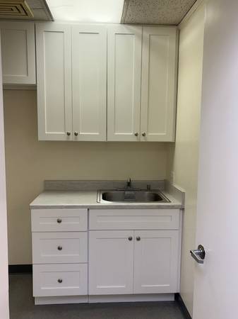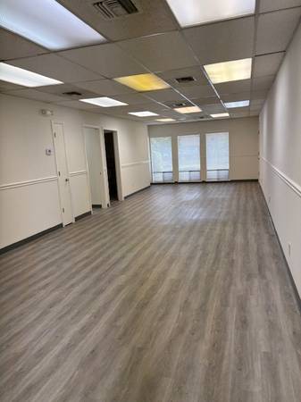 1,042 sf. Open floor plan with ADA bathroom, One to Two private offices, storeroom, and break room with sink. LVP flooring. Access ramp. Accessible restroom