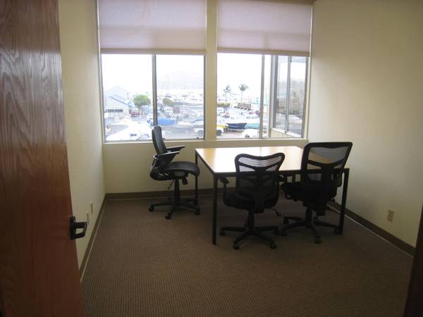 Suite 205. 1045 RSF. Four large private offices on the window. Coffee bar. Reception area. Great water views over Clipper Yacht Harbor. Asking $3.50 per SF. No load. PG&E included. Plentiful onsite parking. Includes a covered parking space.