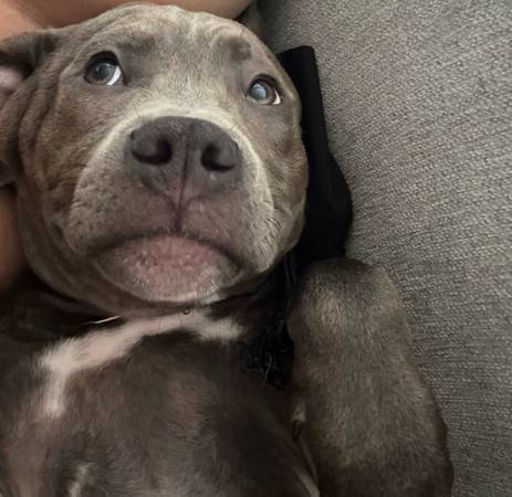 Male brindle American bully puppy 4 months old 2 puppy vaccines done Dewormed friendly, calm energy Crate trained