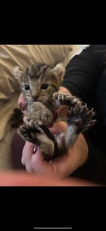 Hello i have 4 kittens for rehoming savannah kittens. Mom is a savannah 2nd generation. Dad is 3rd generation. These cats are not for beginners. Very strong willed breed of cats. If interested please have experience with this breed to ensure a healthy happy life. Rehoming fee varies depending on kitten. These babies are 5 weeks will be ready to go 2nd week of December. 2 girls 2 boys. One is a polydactile front and back feet 26 toes. Posting for owner kittens located in modesto. If interested contact Rosie