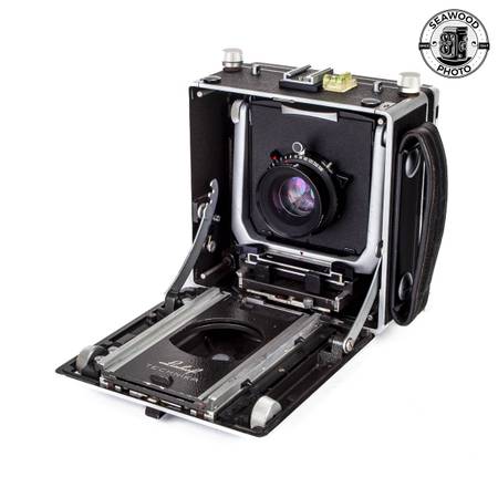 This rare Linhof is one of our favorites! It is like the Master Technika but has no rangefinder focus attachment. This is seen by many as a plus, as the camera is smaller and lighter (plus almost no one hand holds a Linhof anyway).